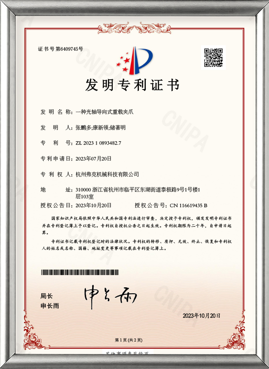 An Optical Axis Guided Heavy-Duty Gripper - Fock Certificate Certificates